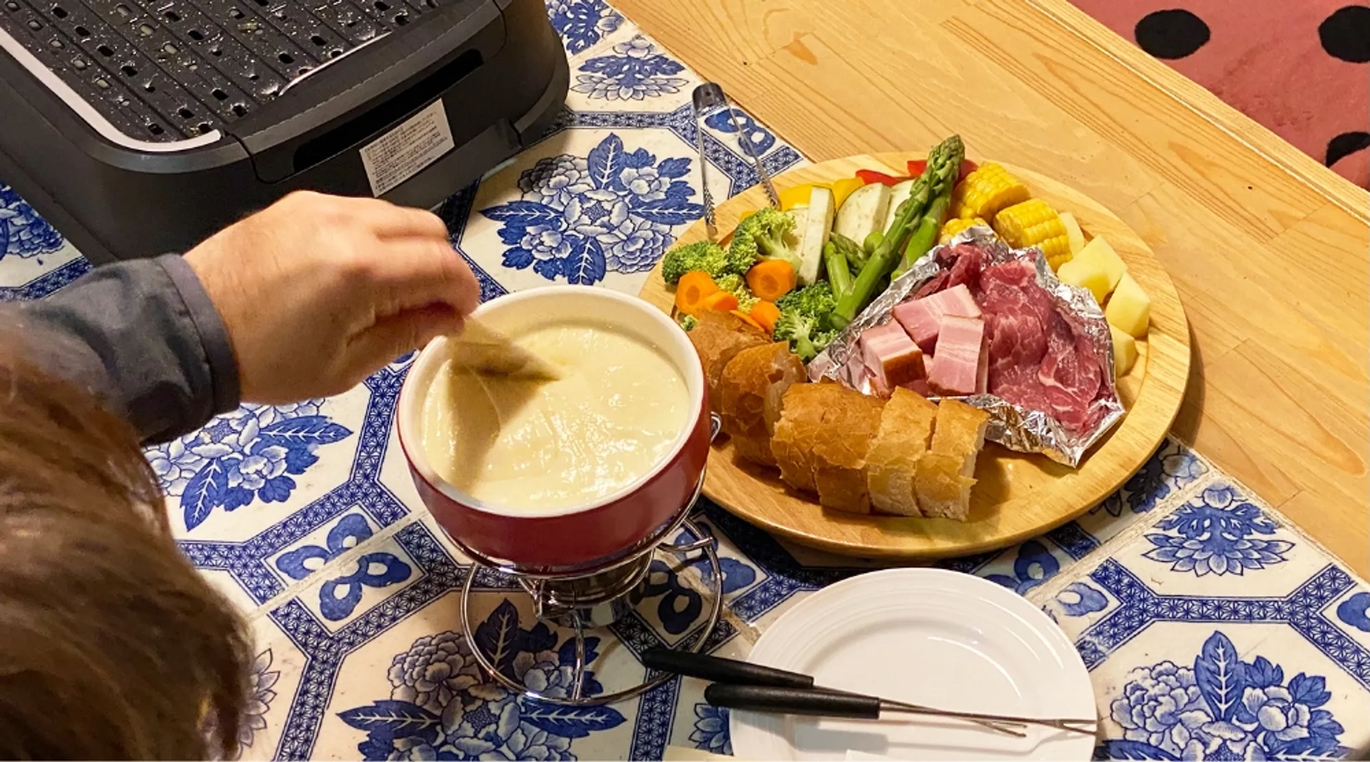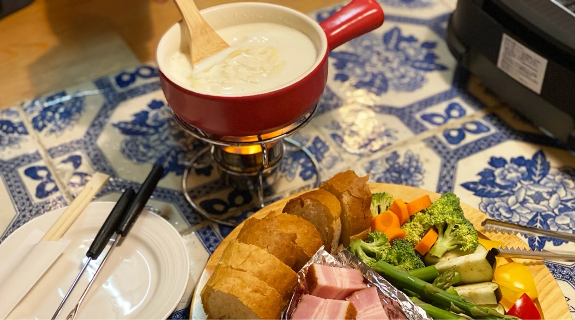 ご友人やご家族とチーズフォンデュをお楽しみください。