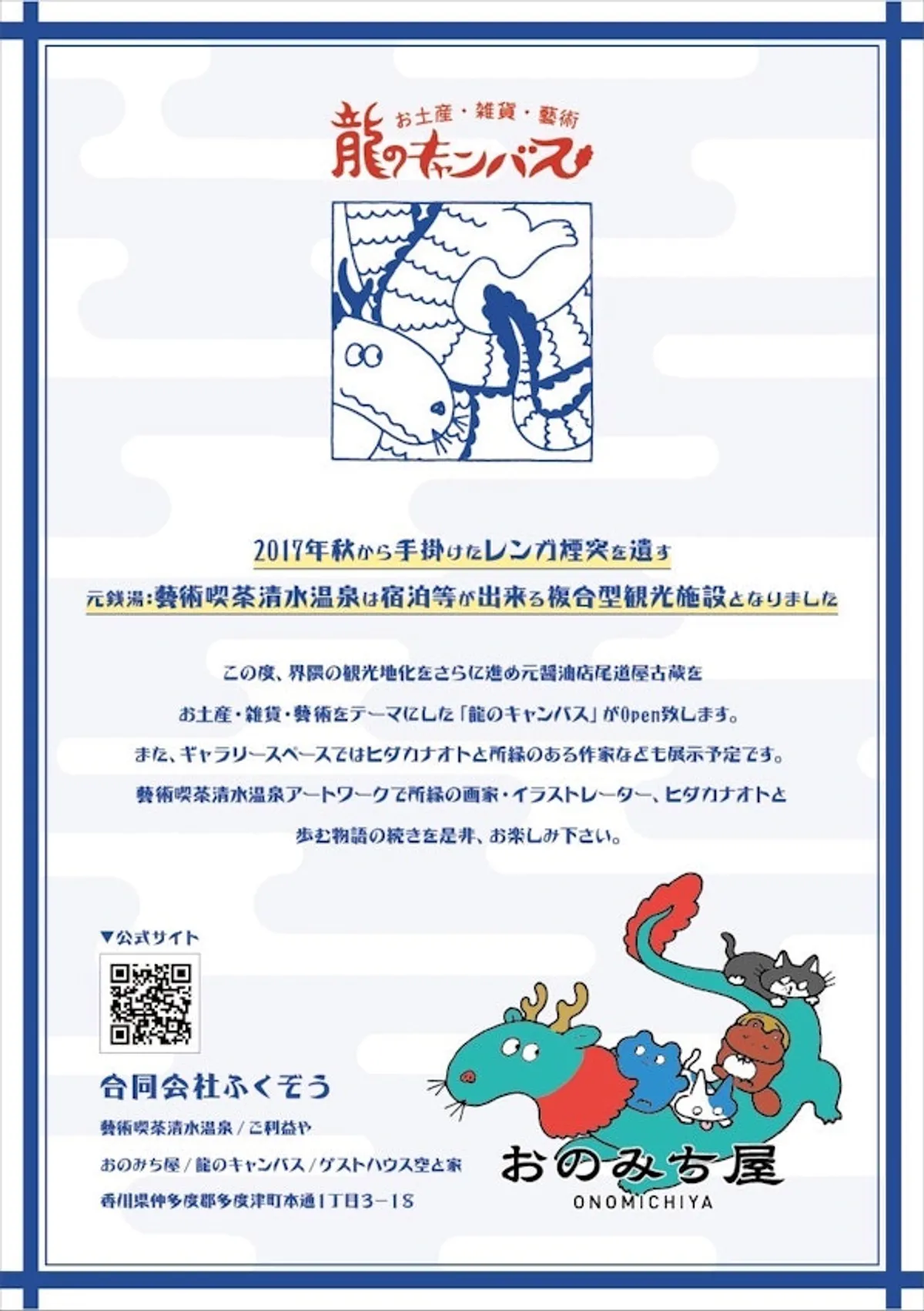 この度、界隈の観光地化をさらに進め、元醤油店「尾道屋」の古蔵を、お土産・雑貨・芸術をテーマにした「龍のキャンバス」を2024年3月2日にオープンいたします。