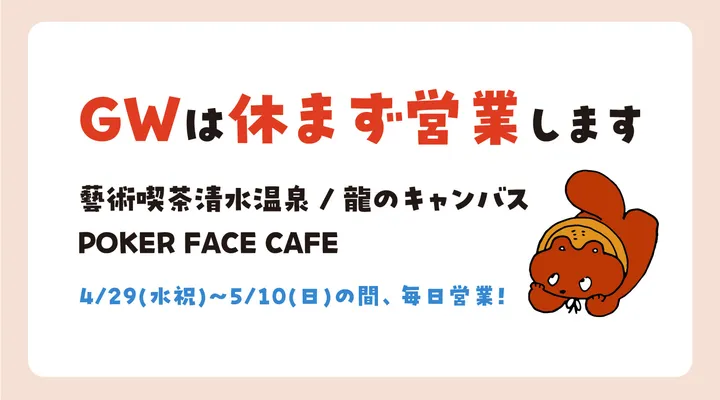 臨時休業のお知らせ|藝術喫茶清水温泉・龍のキャンバス・POKER FACE CAFE